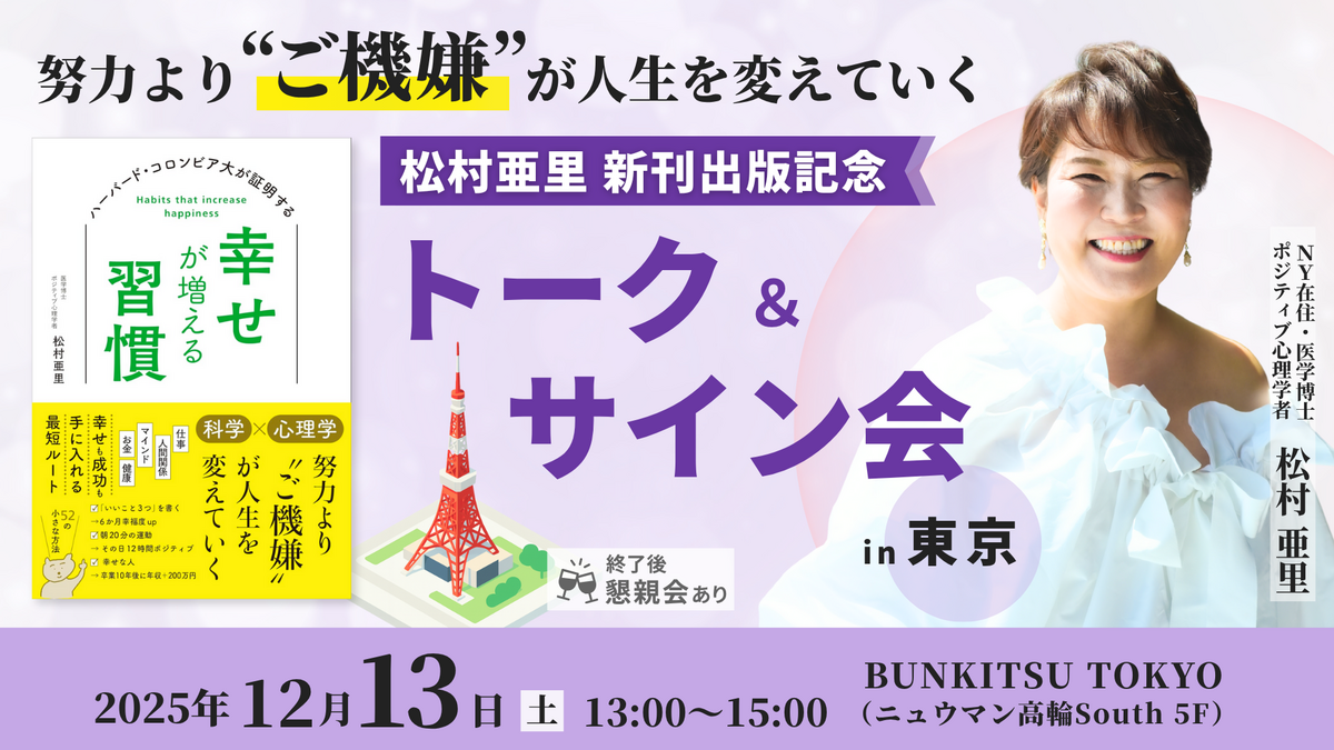 『幸せが増える習慣』出版記念トーク&サイン会が、東京にて開催されました。